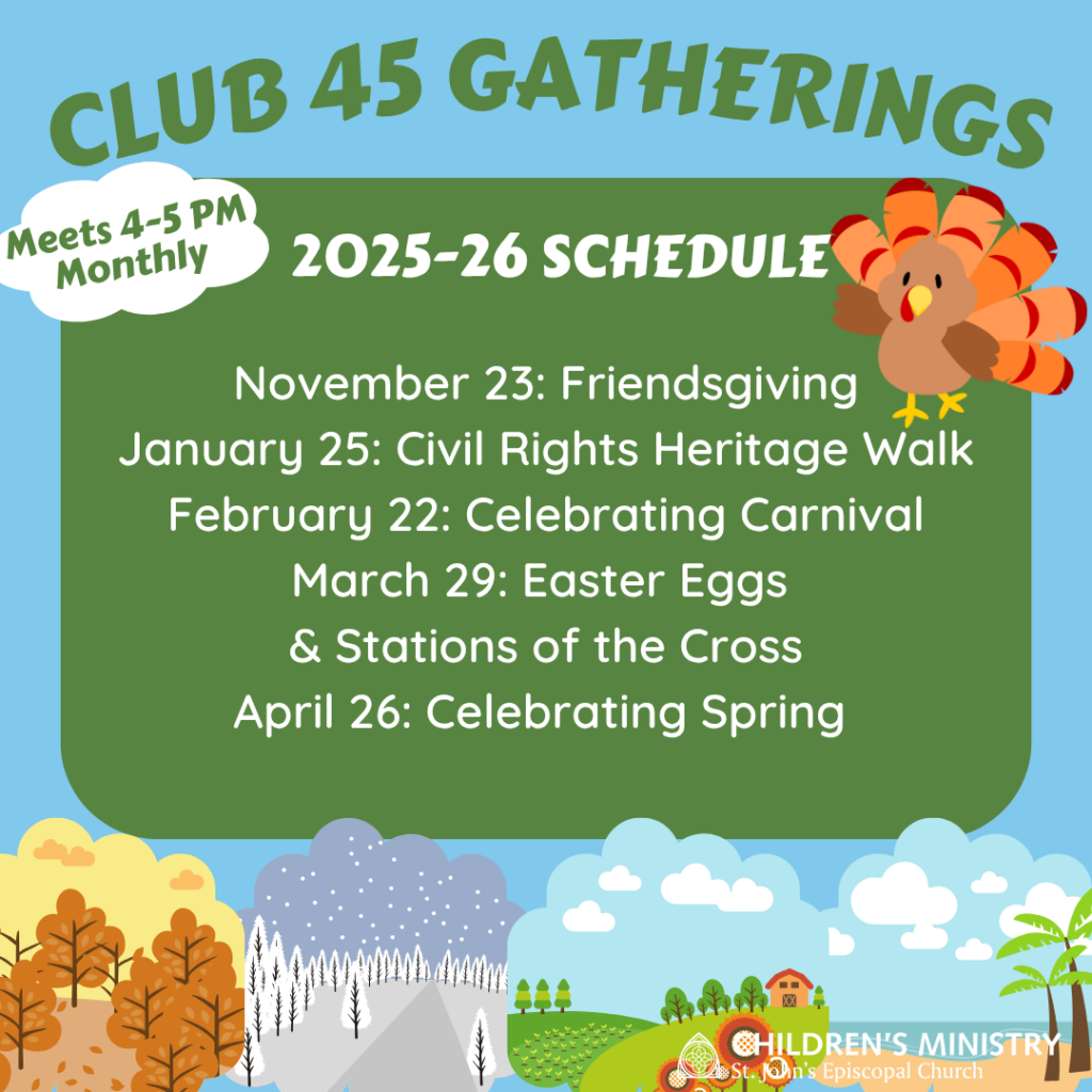 Children in PreK-5th grades are invited to join us from 11:15 AM–12 PM for weekly Christian formation.