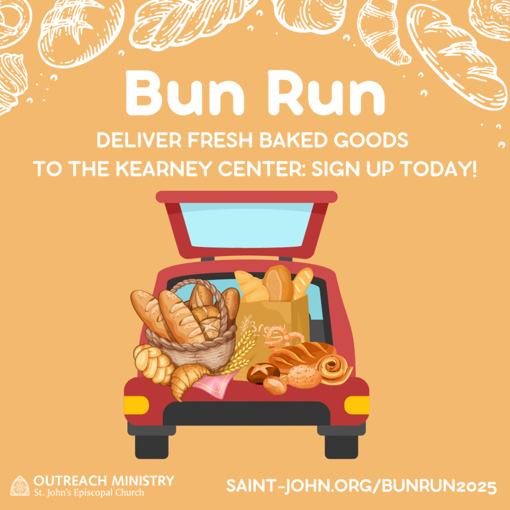 Did you know that St. John’s has a dedicated team of drivers who deliver donated baked goods to The Kearney Center? Every Friday morning, a St. John’s volunteer drives donated bread, bagels, and cookies from Tasty Pastry Bakery directly to those in need. Thanks to the faithful efforts of many parishioners, tons of high-quality baked goods have been shared with grateful guests at The Kearney Center.